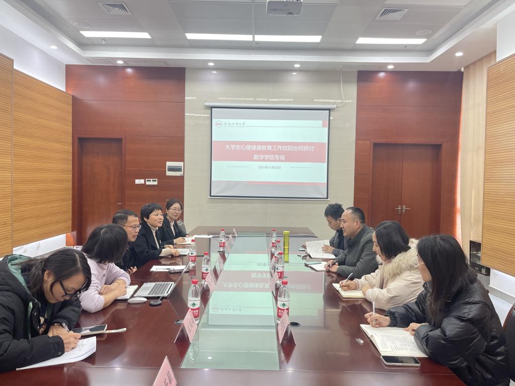 11月24日下午,开云app登录入口2021年心理育人工作校院协同研讨会在翡翠湖校区科教楼A座第三会议室举行。党委学生工作部心理健康教育与咨询中心、学院相关领导和老师参加了会议。学院党委书记范仁庆代表学院向心理健康教育与咨询中心各位领导老师表示欢迎,数学学...