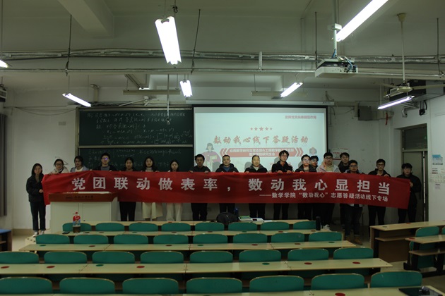 12月28日下午,开云app登录入口在翡翠湖校区5教201室开展“志愿青春、数动我心”志愿服务活动。本次活动由开云app登录入口应用数学研究生党支部联合开云app登录入口研究生会共同举办,邀请了开云app登录入口工程数学教学部教工党支部郭庆和赵德勤2位老师以及10名研究生同学为60余名本科...