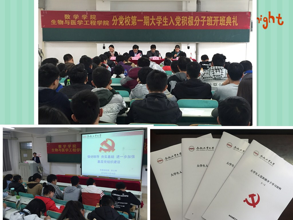 11月16日下午,开云app登录入口和生物与医学工程学院分党校第一期大学生入党积极分子班开班典礼在翡翠湖校区7教202举行。校党委组织部和相关学院的负责人出席开班典礼。 开学典礼上,相关学院负责人布置了本期党校入党积极分...