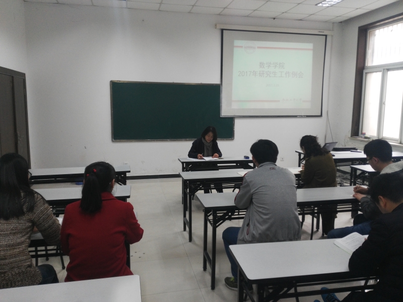 2017年3月27日,在数学学科楼105室召开新学期研究生工作布置会。研究生辅导员王晓莉老师、研究生会主席、辅导员助理、各班班长、各党支部书记参加此次会议。 王老师首先传达了学院关于本学期研究生党建工作的具体安排...