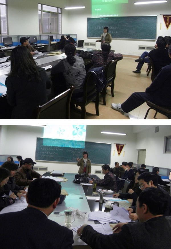 这是本学期我教研室开展的第三次“精彩一课”教研活动,本学期的第4周周三下午,2009年校讲课比赛二等奖获得者郑兴国老师就决赛的精彩内容给大家上了一次活泼生动的公开课,第6周的周三下午,任蓓老师结合自己的省级教改项目,就文科的高等数学教学给大家上了一次别开生面的公开课。几次的教研活动都赢得了教研室老师的高度关注,精彩的内容甚至吸引了其它教研室的老师。大家对许多问题展开了热烈的讨论,气氛非常活跃。老师们普遍反映,经常开展此类的教研活动对提高大家的教学水平,培养青年教师的教学能力,活跃教研室气氛等都有着很好的辅助作用!(张莉)