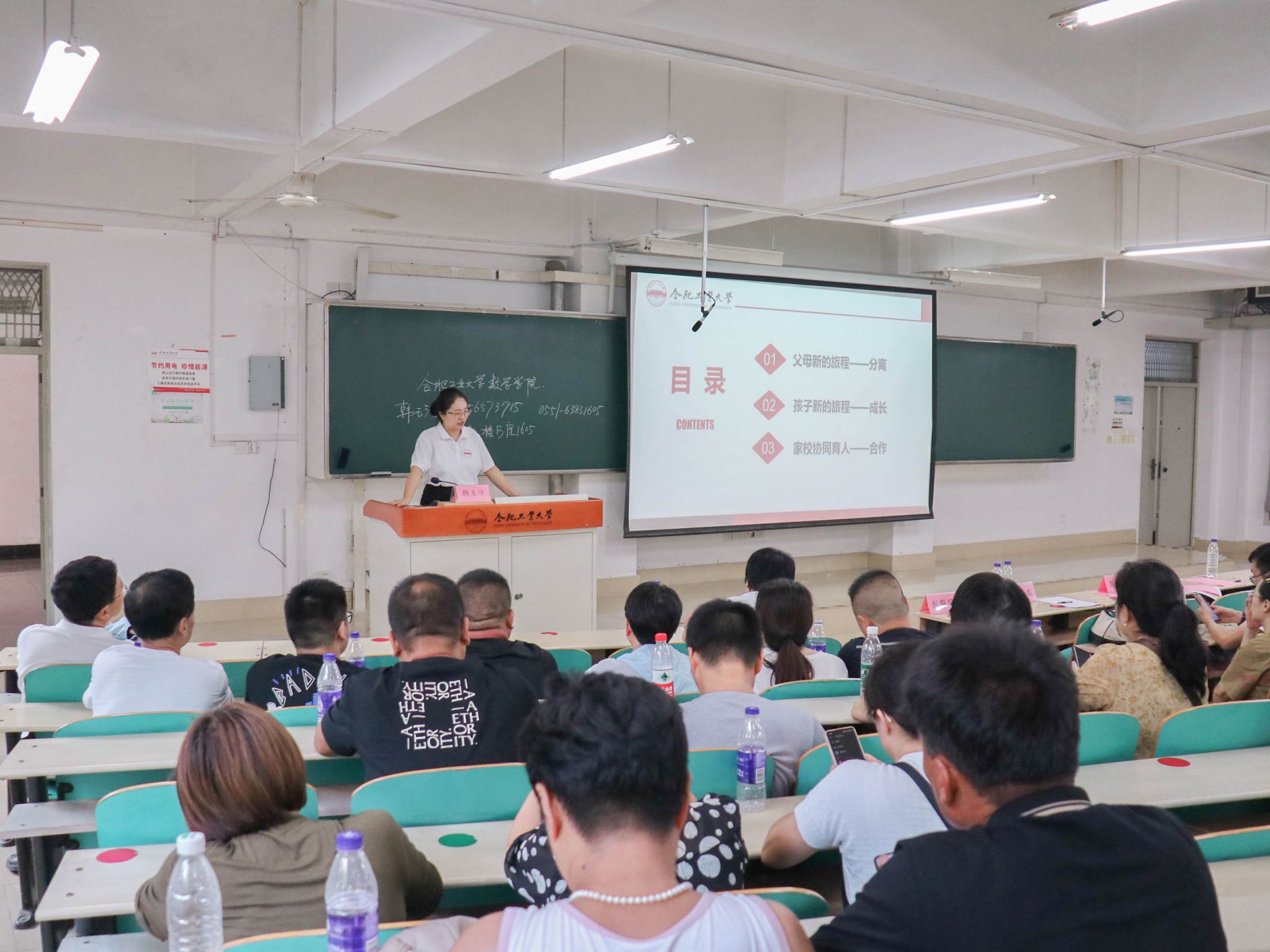 讲座环节,新生辅导员韩玉洁做了题为《家校协同筑“合”力,德才共育赋“心”能》的新生家长心理健康教育专题讲座。讲座从父母新的旅程——分离、孩子新的旅程——成长、家校协同育人——合作三个方面。讲座既安抚了家长担心孩子独自在外又想让孩子勇敢闯荡的矛盾心理,又讲解了大学生心理常见问题,教会家长有效沟通方法。家长纷纷表示讲座内容丰富,实用性强,受益匪浅,对学生和自己都有很大帮助。