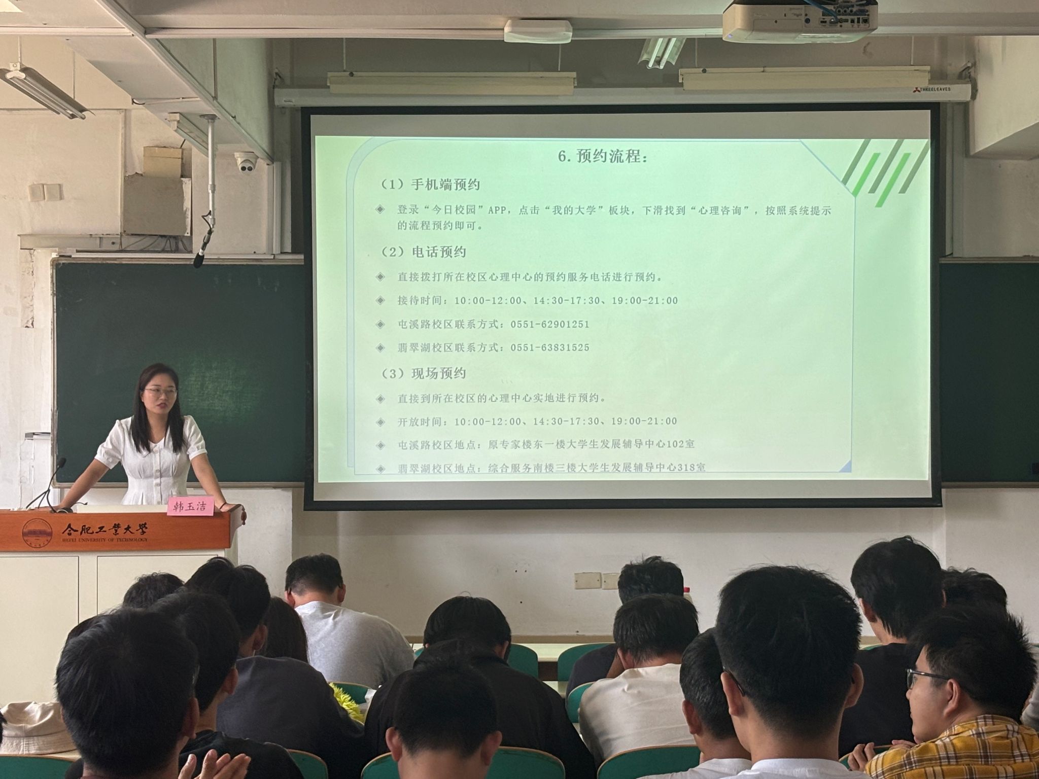 最后,研究生辅导员韩玉洁开展“心理健康教育与校纪校规教育”。她宣讲了心理健康知识,勉励全体新生能够坚定理想信念,厚植爱国爱校情怀,传承合肥工业大学 “工业报国” 的光荣传统,将个人成长融入国家发展大局,以 “爱国之情、强国之志、报国之行” 开启研究生生涯;同时鼓励新生主动加强与师生的沟通交流,快速适应研究生学习与生活,在传承开云app登录入口优良文化的过程中,找准定位、明确目标,在学术道路上稳步前行。刘楠老师介绍了学籍管理规定等相关政策。