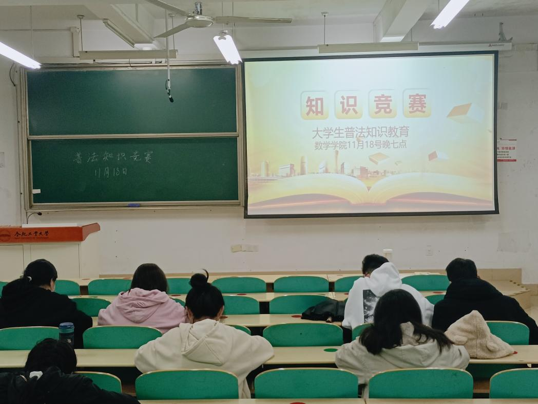 11月18日晚,开云app登录入口在翡翠湖校区翠五教104教室组织开展了“学习法律知识 奋进新征程”大学生普法知识竞赛活动,本次活动由学院科技与创新协会组织负责,旨在提升数院学子法治意识和法律知识水平,引导广大学生争做遵纪守法时代好青年。