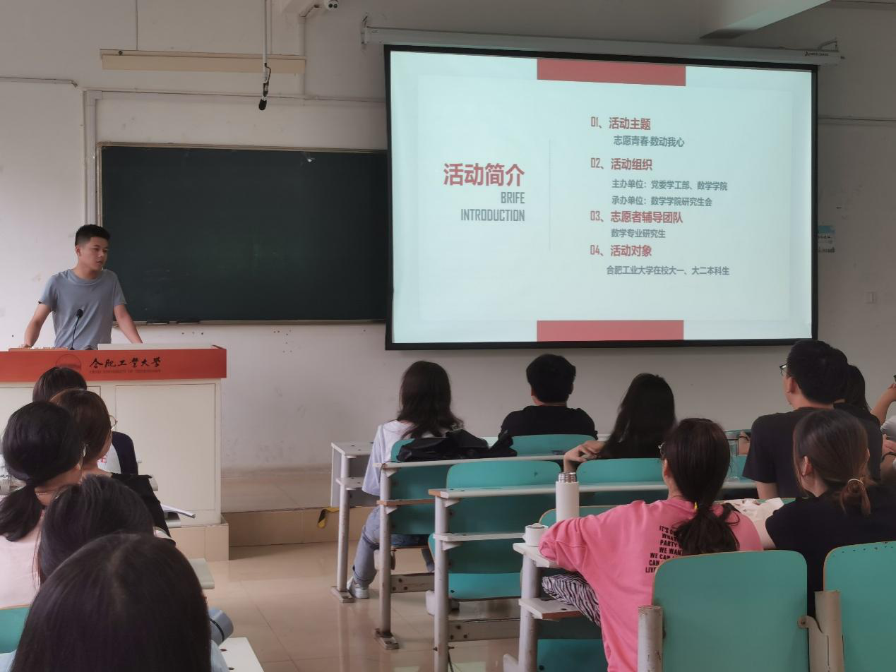 会议第二项,陈鹏同学从活动组织、活动对象、活动意义三个方面,对“数动我心”朋辈帮扶系列活动进行了介绍,鼓励大家可以充分发挥自己的专业特长,面向全校本科学生就数学学科学业方面答疑解惑。同学们表现出极大的热情,纷纷报名参与活动,争取贡献自己的一份力量。